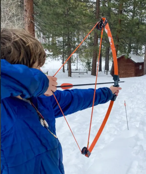 Défi d'adresse ! Tirez des flèches à pointe ventouse (soft) à l'aide d'un arc dédié à cet effet, en direction de la cible et avec le plus de précision possible !