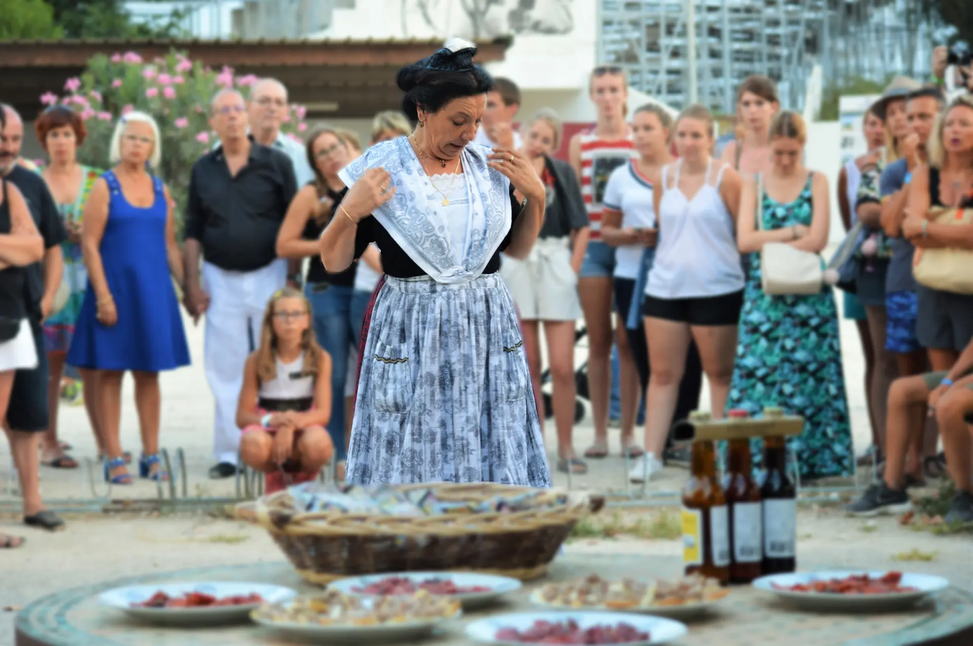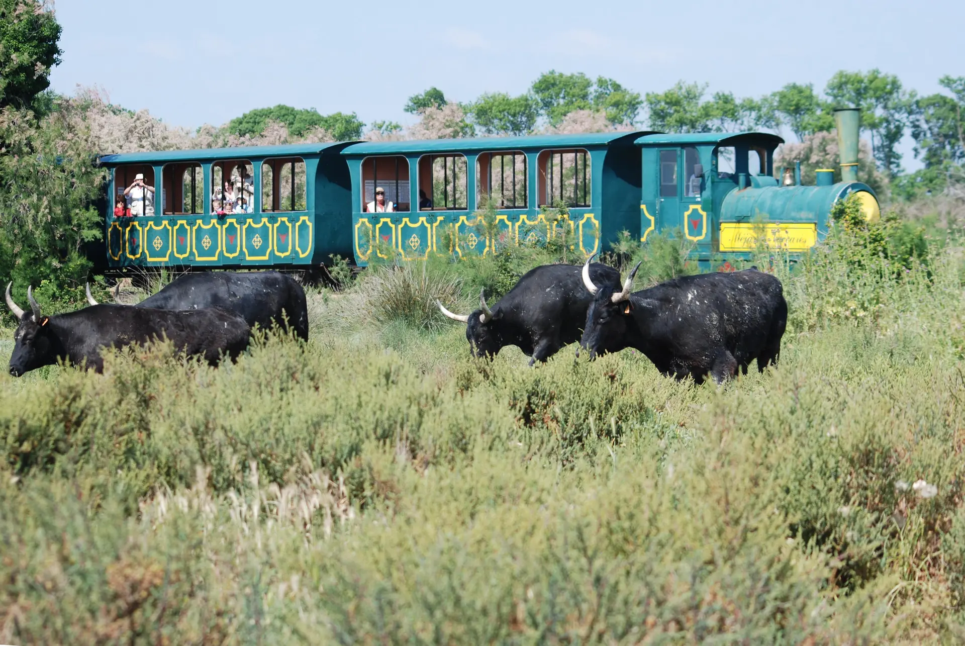 Dès 17h30, vous embarquerez dans le petit train puis assisterez à une animation taurine effectuée par les gardians à cheval au milieu des taureaux, et commentée par le Manadier. Au retour, Muriel vous attendra costumée en Arlésienne pour vous donner toutes les spécificités de son costume et des produits locaux. Enfin, vous rejoindrez la Bergerie de Méjanes pour déguster la fameuse gardiane en présence d'un groupe de musiciens gipsy !