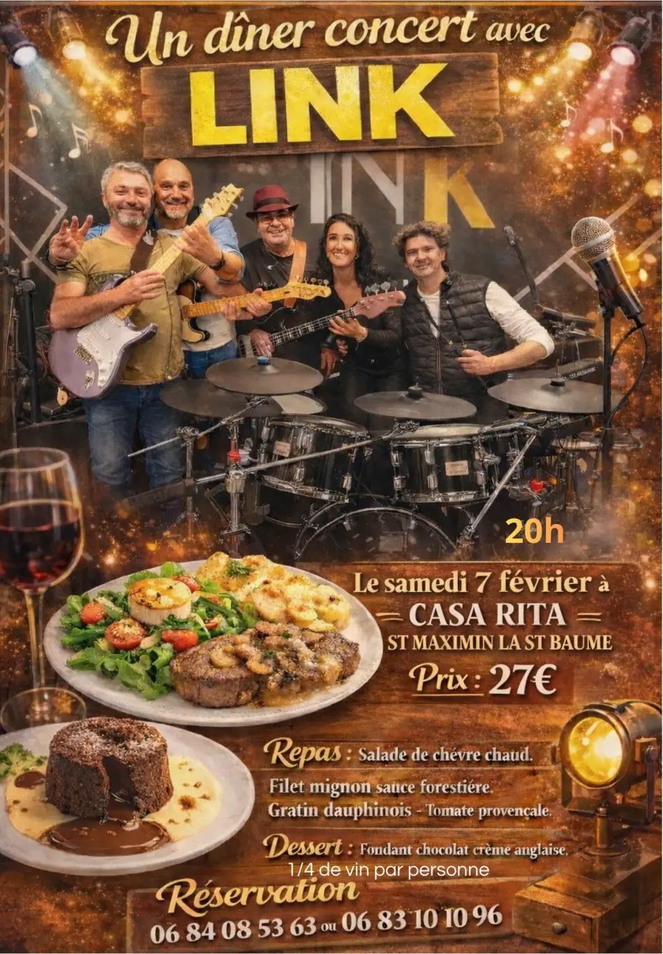 La Casa Rita vous invite à sa super soirée dîner concert avec le groupe "LINK" qui animera cette soirée pour une ambiance de folie jusqu'au bout de la nuit
