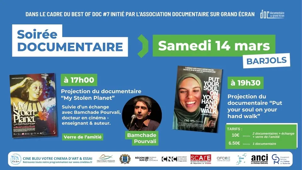 Ciné bleu vous invite à la projection de deux documentaires, suivie d’un échange avec Bamchade Pourvali au cinéma de Barjols !
