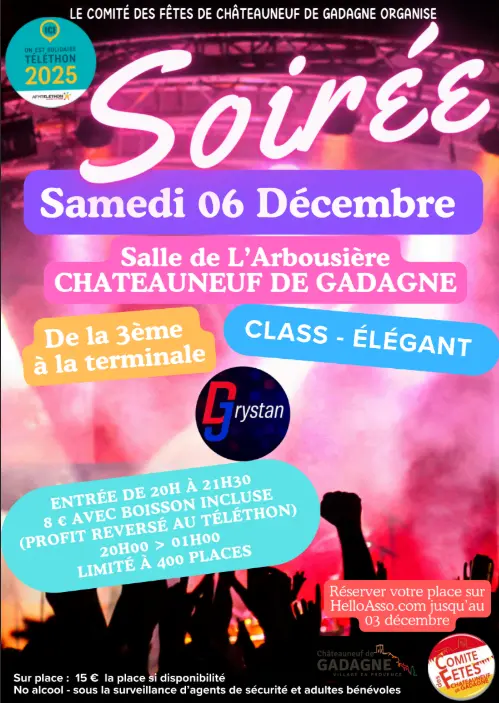 La traditionnelle Soirée des Ados, organisée au profit du Téléthon, aura lieu cette année le vendredi 6 décembre à Châteauneuf-de-Gadagne.