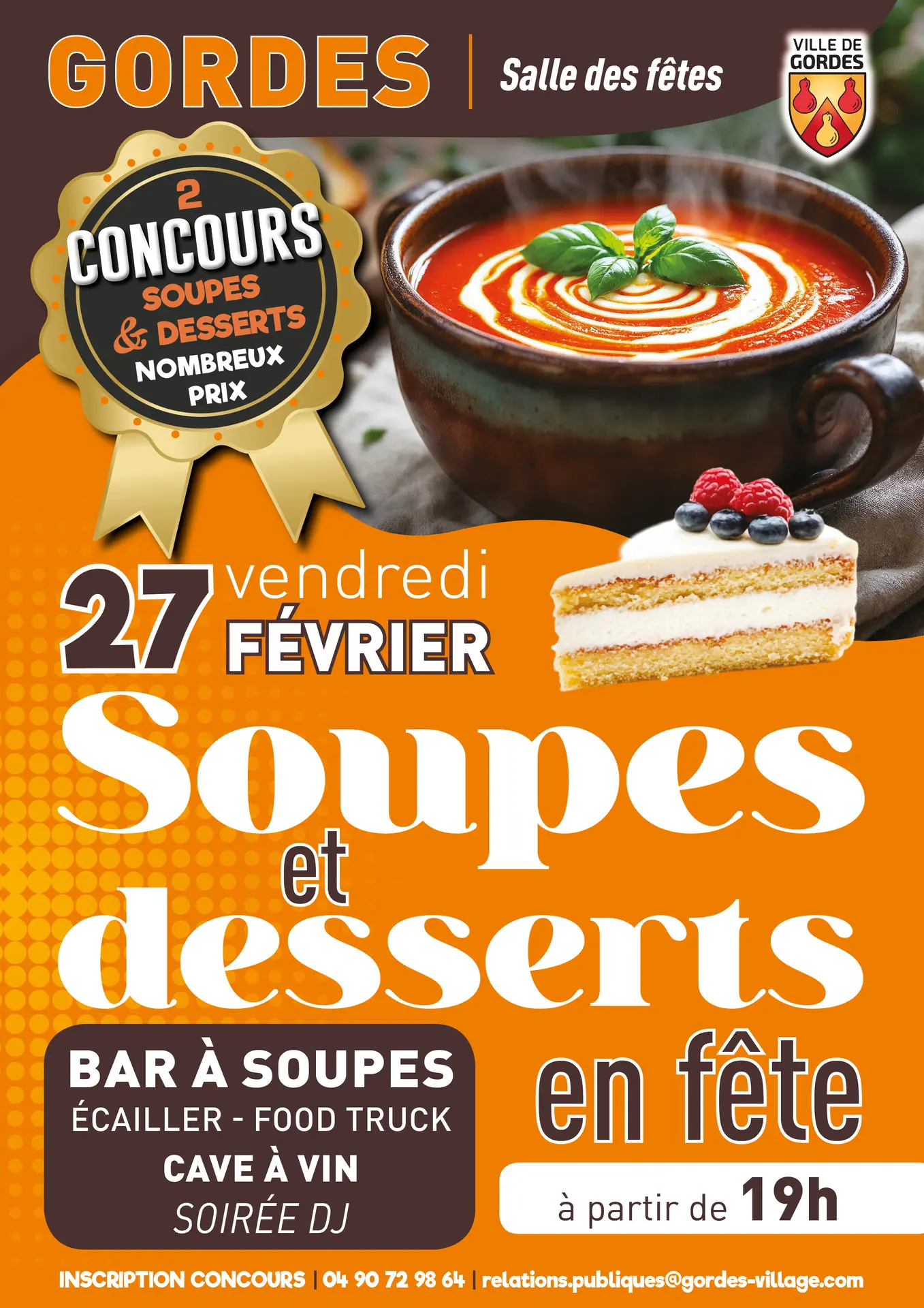 Concours de soupes et desserts avec de nombreux prix à gagner. Bar à soupes, écailler, food truck, cave à vin et soirée DJ.