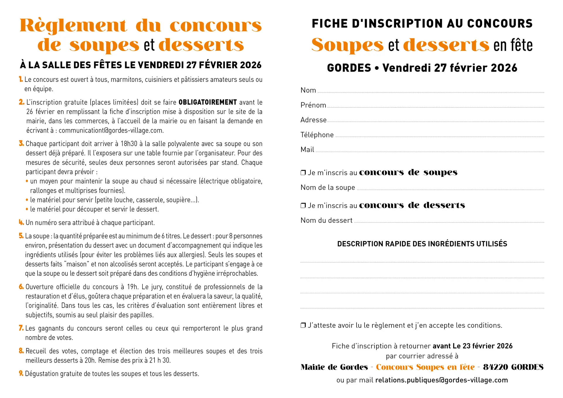 Inscription pour le concours par téléphone au 04 90 72 98 64 ou par mail à