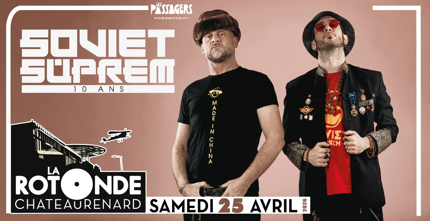 Pour fêter ses 10 ans de Révolution du dancefloor ; le Soviet Suprem repart en campagne avec un nouvel EP qu’il défendra sur scène, une bataille de plus pour franchir le mur du son et faire raisonner leur grande Internationale. A l’heure où les nations se replient sur elles même, où la petite ritournelle des « Fashion Fachos » gagne peu à peu tous les arcanes du pouvoir, John Lénine et Sylvester Staline reviennent aux fondamentaux : casser les barrières en revisitant la sono mondiale, de Vladiwoodstock à Bogota pour célébrer le genre humain… Face à la lutte des clashs, au nouveau désordre planétaire et en attendant les lendemains qui chantent, le Soviet continue de réunir les chœurs en canon et invite tous les peuples du globe à entonner leurs nouveaux airs pacifiques. Le combat pour la révolution du dancefloor continue… La République, c’est nous : Vive le SOVIET SUPREM !