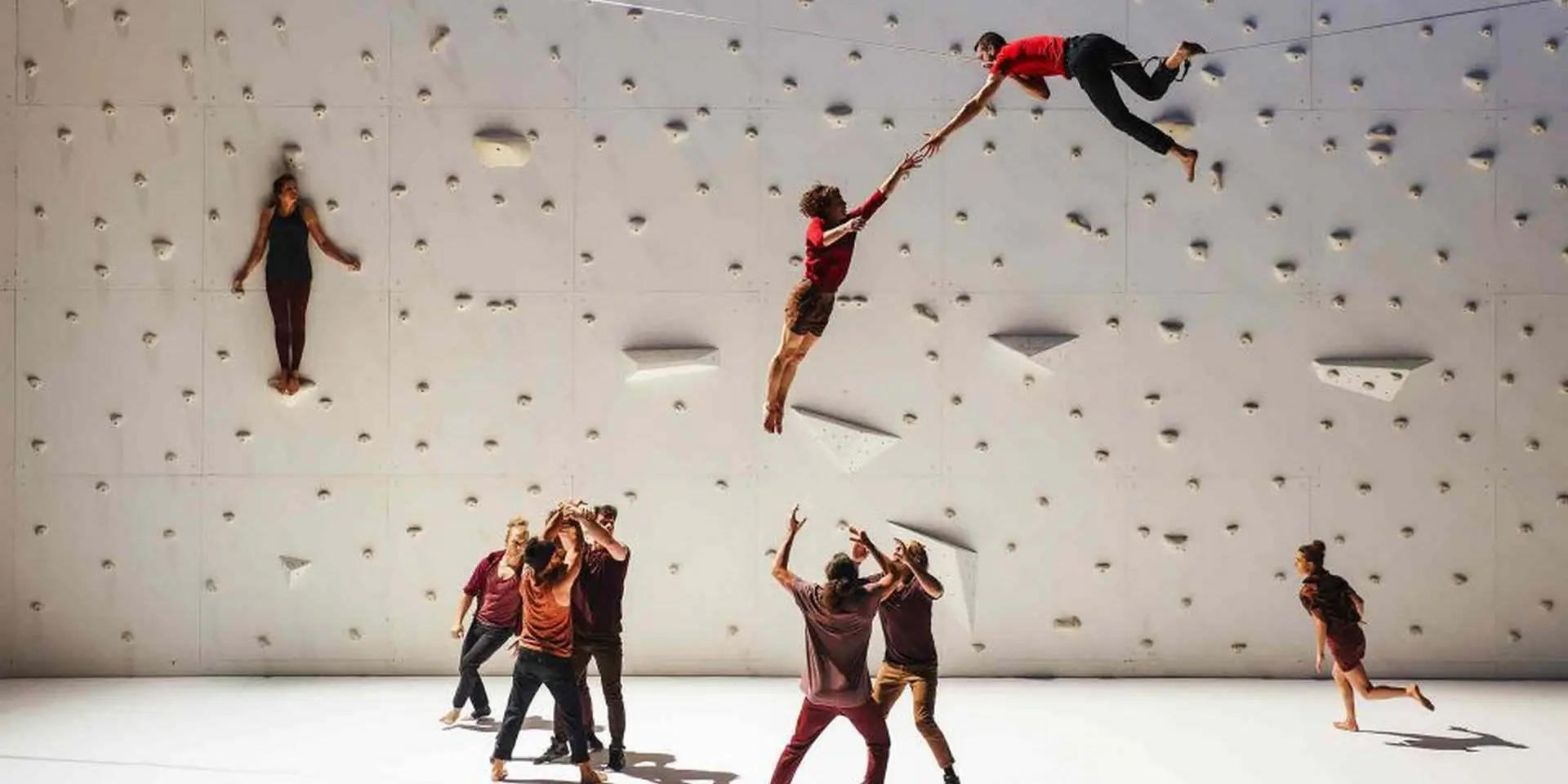 Nathan Paulin est highliner, Nina Caprez, grimpeuse. Ils ont en commun de défier la gravité et la peur du vide. Voilà qui fascine Rachid Ouramdane, désireux de leur donner des ailes et de sublimer leur pratique, aux côtés d’une poignée d’acrobates de haut vol. Un mur d’escalade comme point d’appui : des vidéos projetées d'ascensions de falaises de Jean-Camille Goimard, comme décor naturel et la musique planante de Jean-Baptiste Julien comme tempo. Nathan et Nina se lancent, retrouvent la précision du geste, l’ivresse et la peur, la fragilité du corps et la force de l’esprit. C’est beau et vertigineux, leurs Corps extrêmes comme des corps célestes.