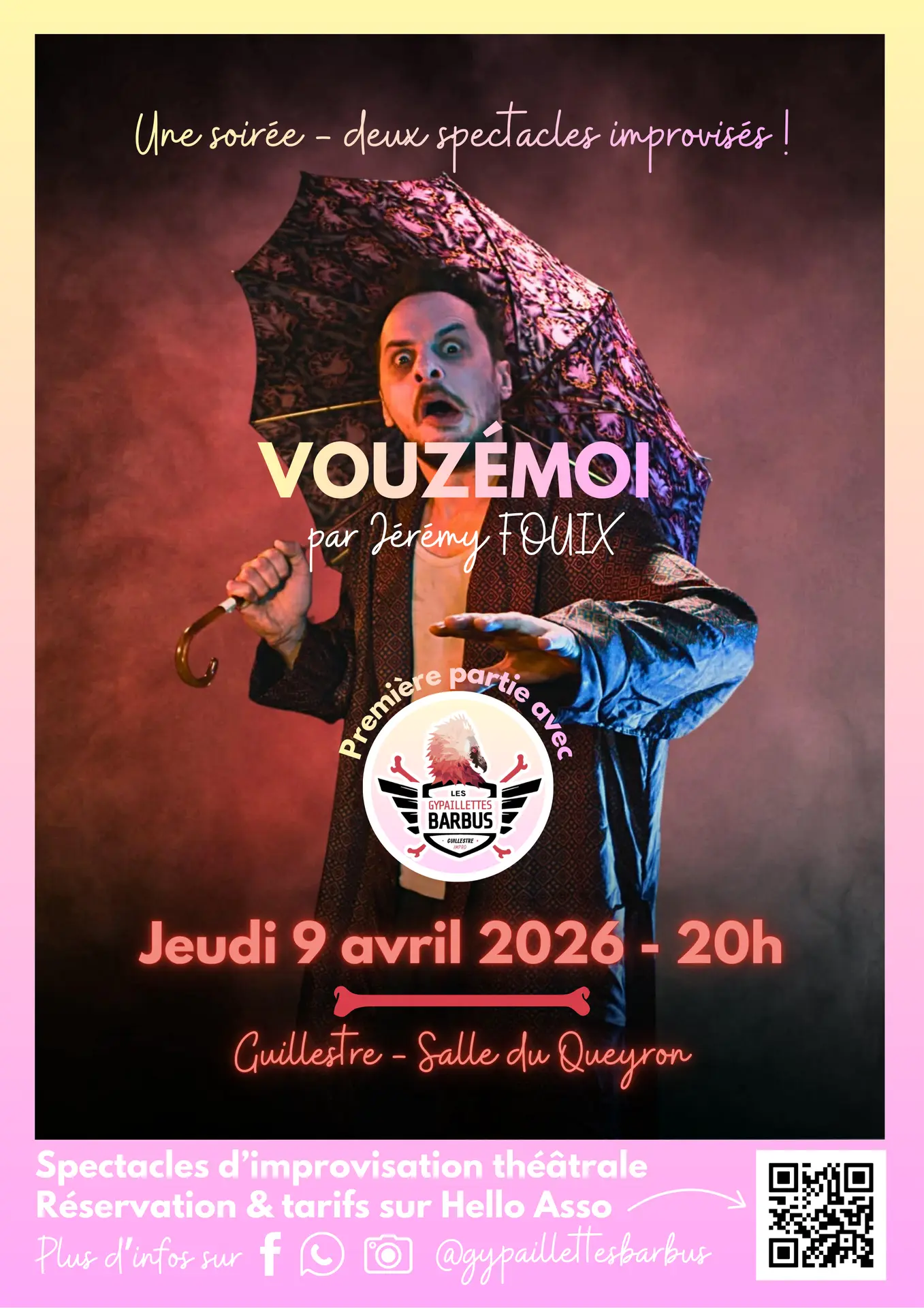 Pas moins de deux spectacles improvisés t'attendent pour cette soirée spéciale organisée par les Gypaillettes barbus.