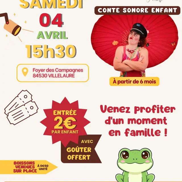 Au Foyer des Campagnes de Villelaure, spectacle pour enfant à 15h30 suivi d'un goûter (part de gâteau offerte - boissons en vente)