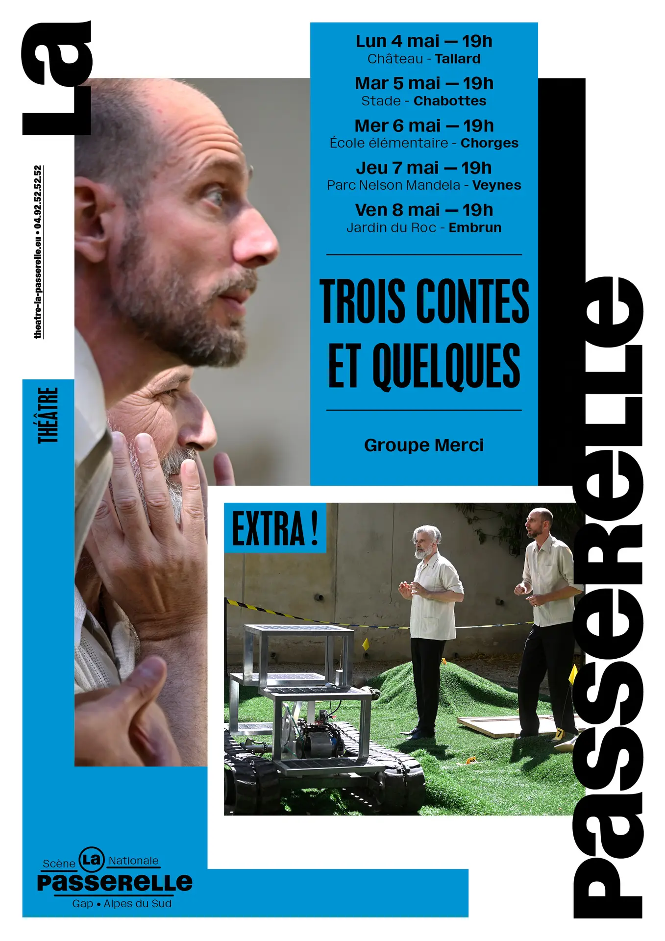 Chez lui, Peau d’Ane se transforme en Peau d’Huile (car son père est un roi… du pétrole), Le Petit Chaperon rouge devient Lou, enfant universel que menacent d’éternels prédateurs, Barbe Bleue est un serial lover courant de yacht en palace, tandis que les fées sont des BFF (Best Friend Forever). Et l’auteur de pointer, mine de rien, les enjeux patriarcaux dont sont modelées ces fables, et la violence toujours à l’œuvre aujourd’hui. C’est férocement drôle, d’autant que les comédiens sont très précis et que le décor, un carré de pelouse synthétique cerné de rubalise, joue à fond le décalage.