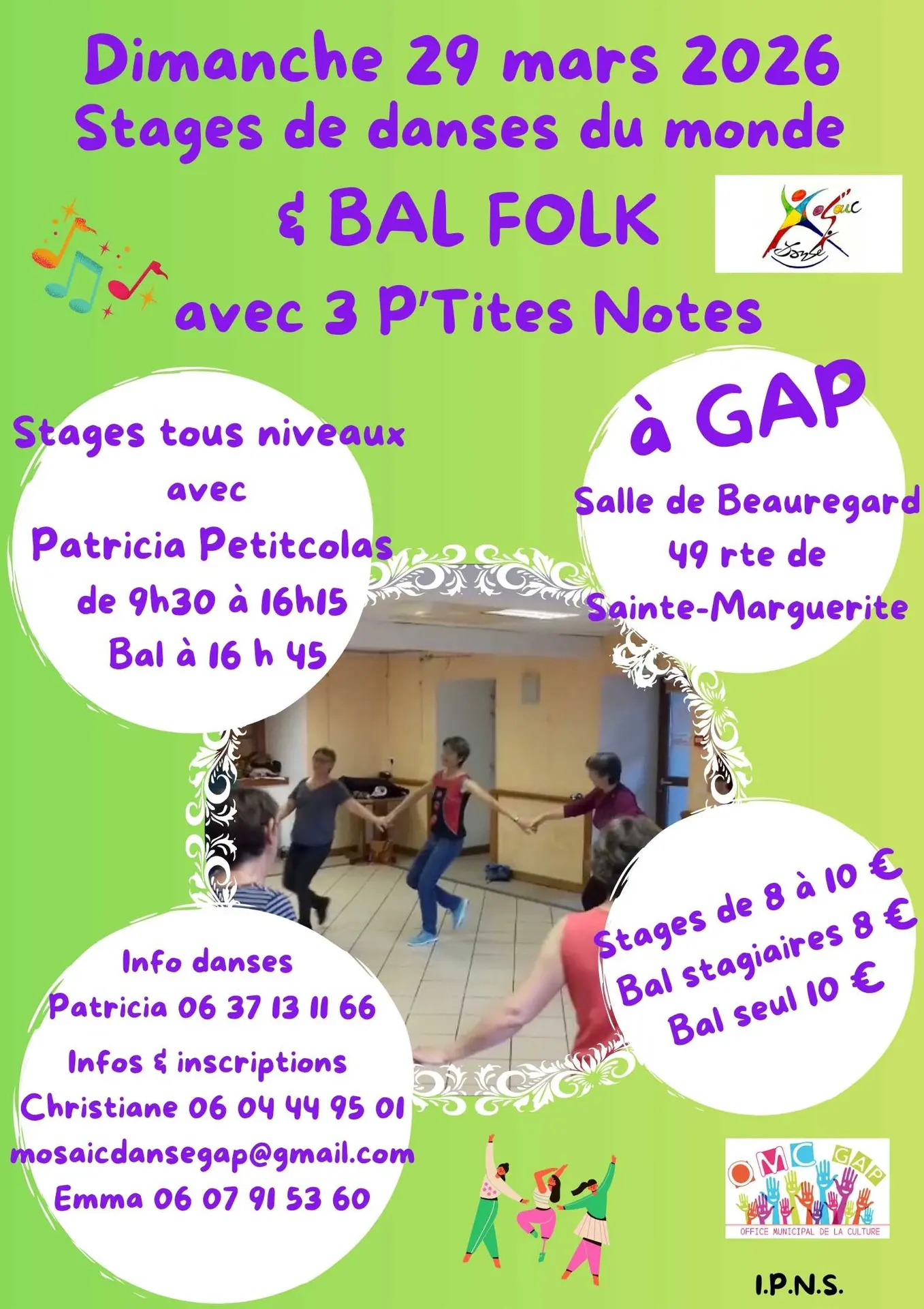 Pour découvrir ou redécouvrir les danses d’ici et d’ailleurs, débutant ou confirmé, venez danser avec Mosaïc’Danse lors de cette journée des stages tous niveaux suivis d’un bal trad