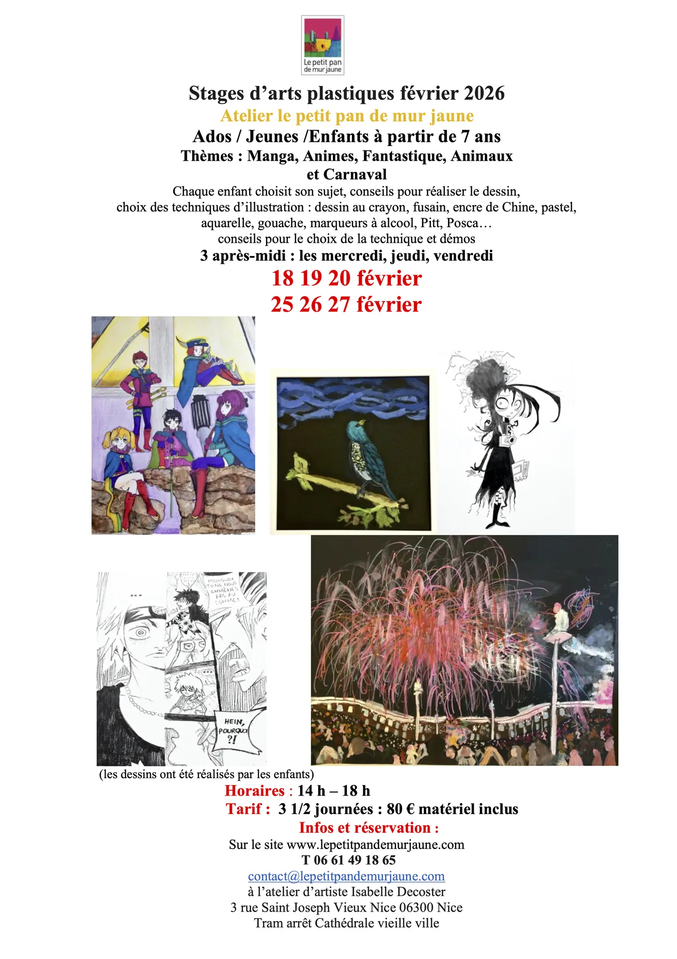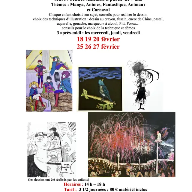 STAGES enfants, ados et jeunes d'arts plastiques sur les thèmes du manga, du fantastique, animaux et carnaval.