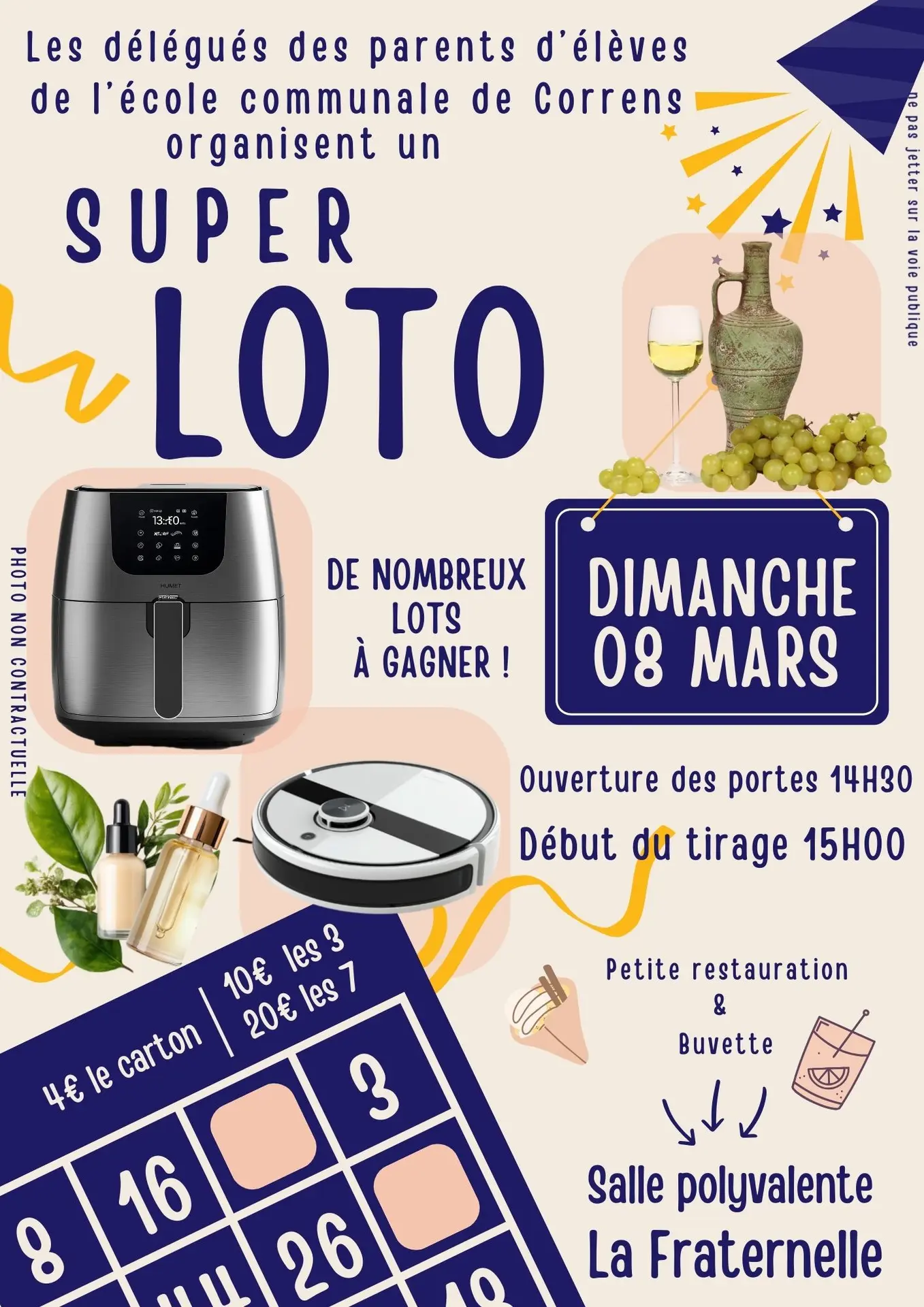 De nombreux lots à gagner. Petite restauration et buvette sur place.