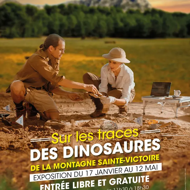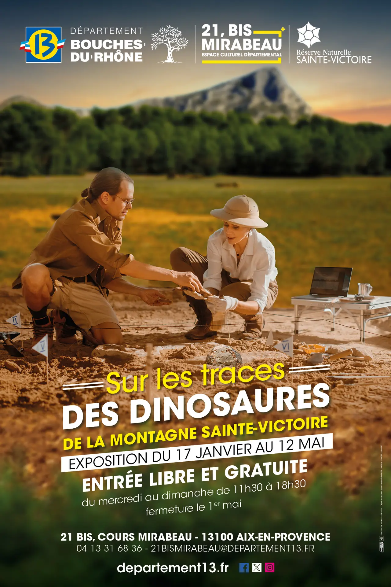 Venez découvrir l'exposition Sur la trace des dinosaures de la montagne Sainte-Victoire au 21, bis Mirabeau - Espace culturel départemental.