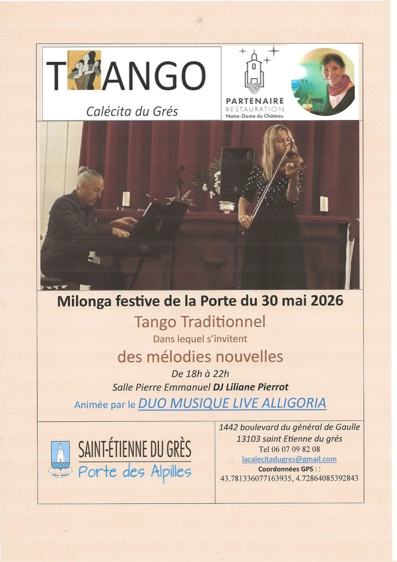 Venez célébrer la florescence du Printemps dans l’atmosphère chaleureuse d’une milonga festive ; Pour cette occasion l’orchestre « Duo musique live Alligoria » agrémentera la soirée (rémunération de l’orchestre au chapeau) Quoi de mieux qu’une musique en live pour danser à deux, dans une salle climatisée