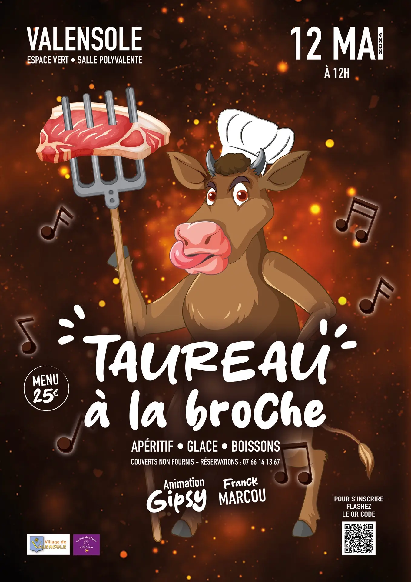 Taureau à la broche préparé par Le Mas des Baumelles des Saintes Maries de la Mer.