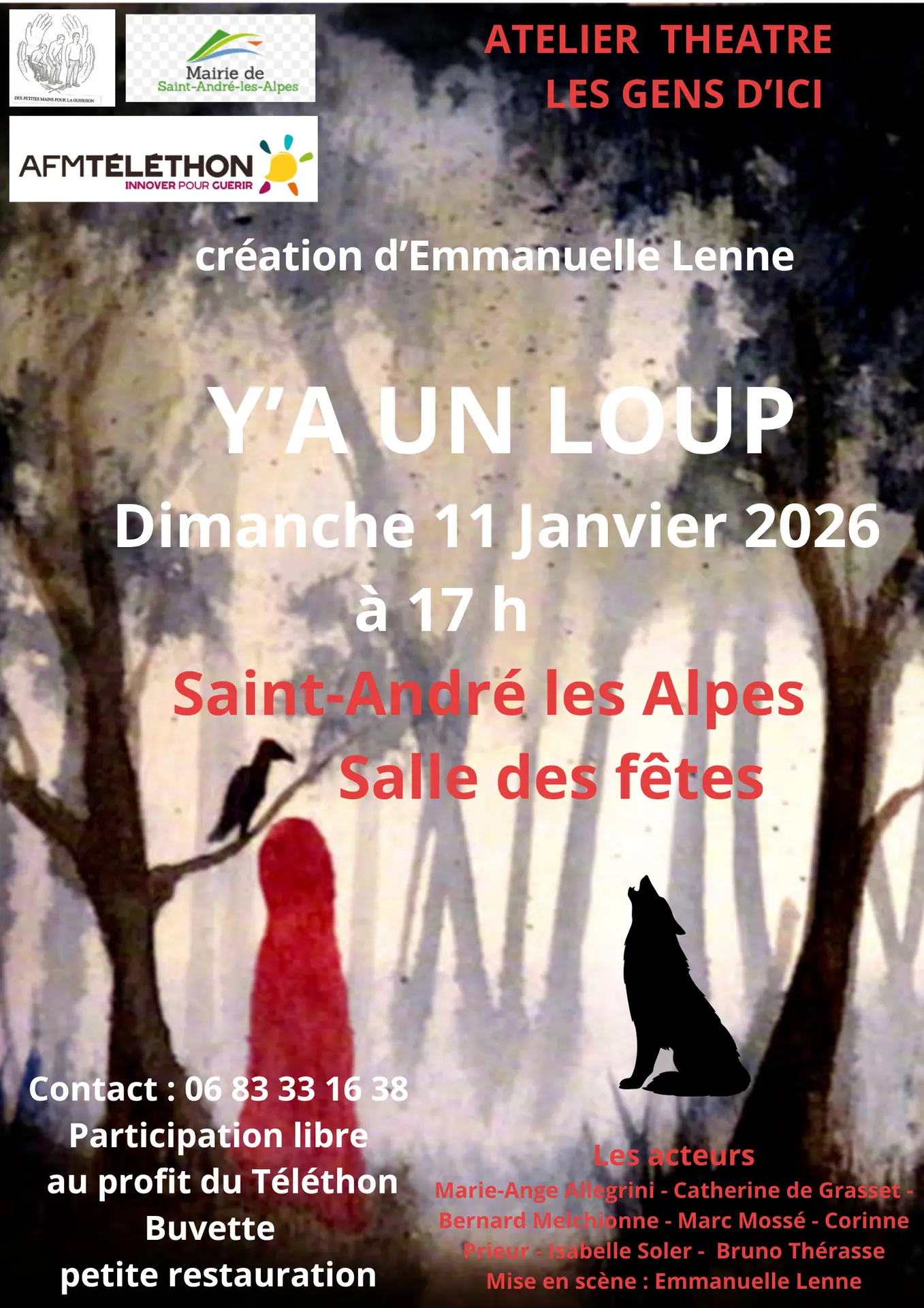 Dernière représentation de la création 2025 d'Emmanuelle Lenne, metteur en scène, intitulée "Y' a un loup" .