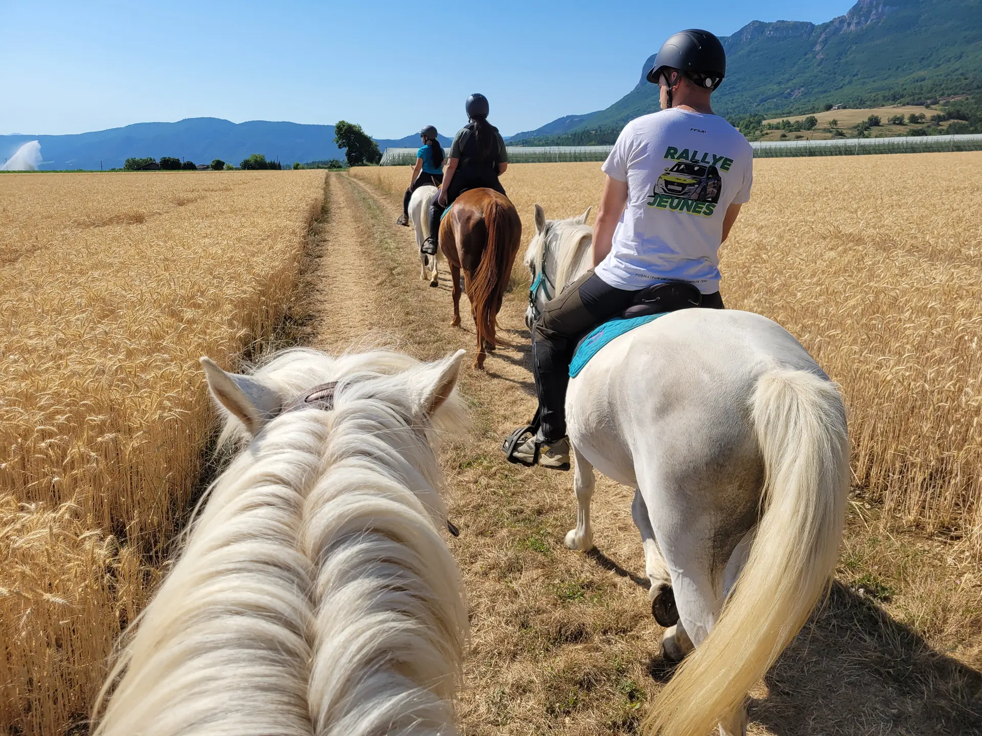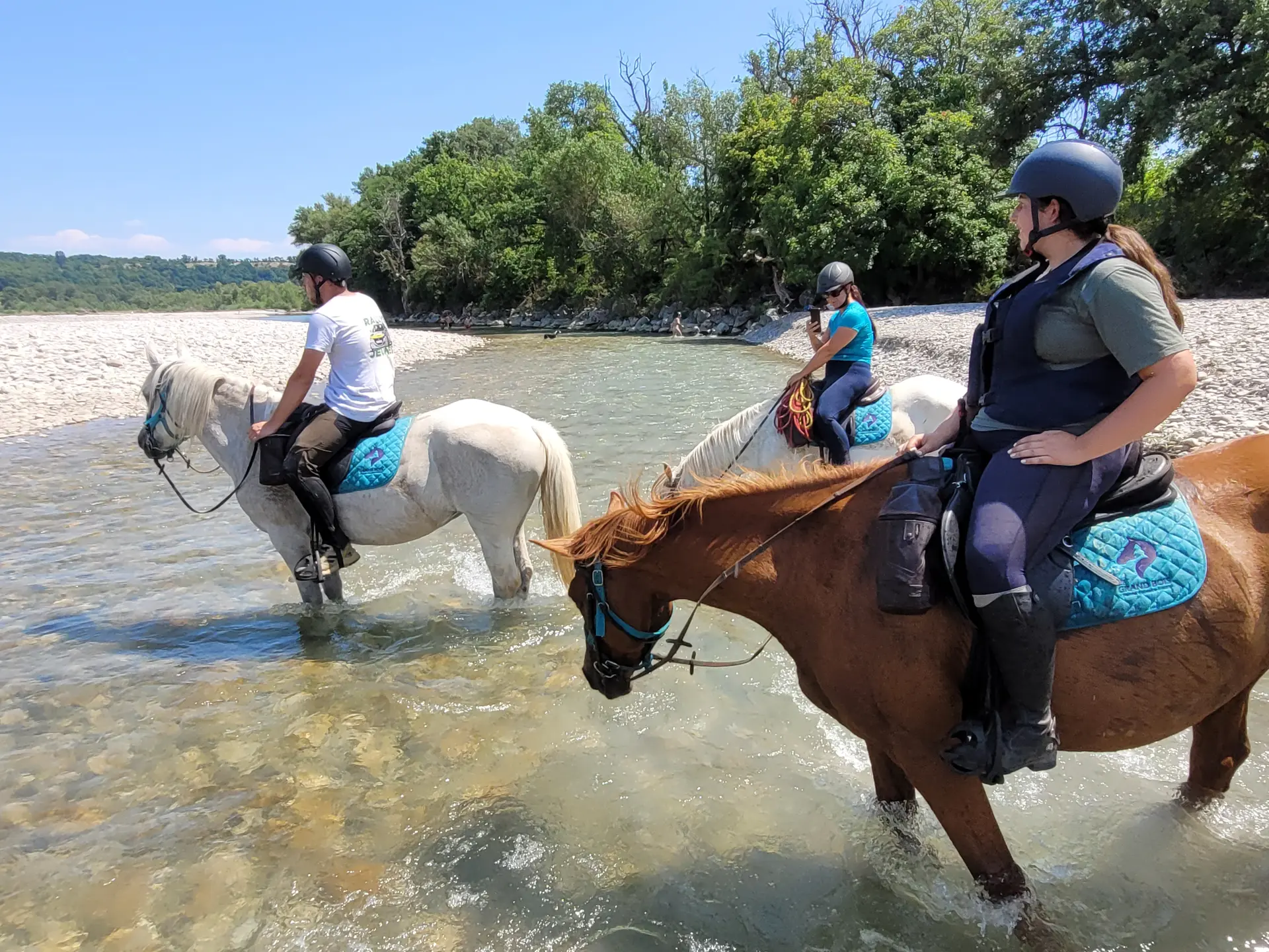 La deuxième moitié de la journée dans la plaine du Buëch vous offrira un brin de fraicheur sous les arbres et même une baignade rafraichissante avec vos chevaux avant de rentrer !
