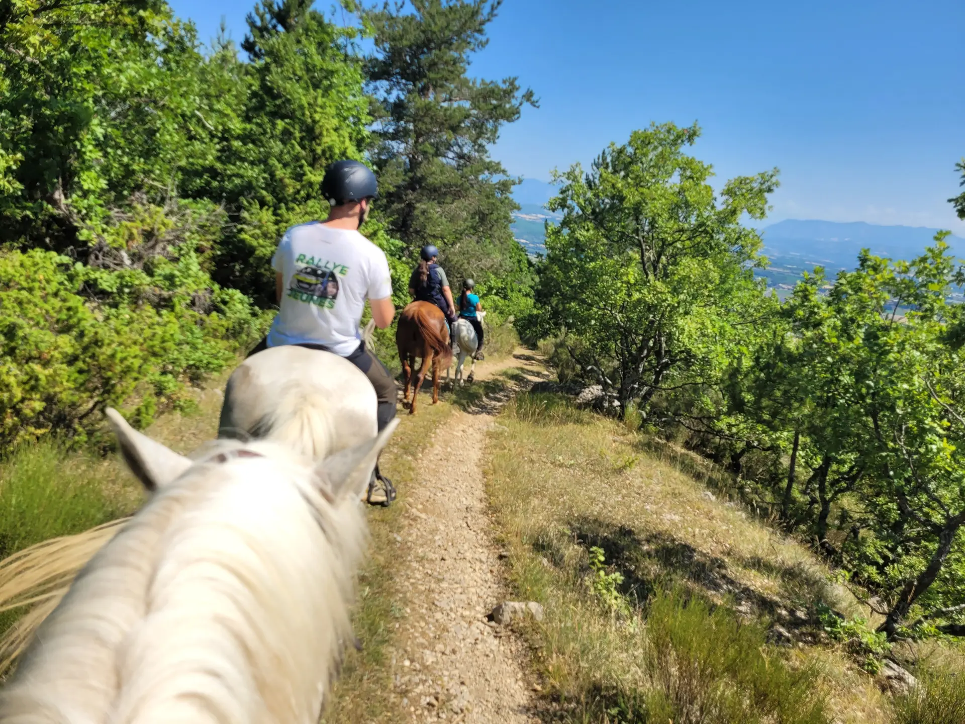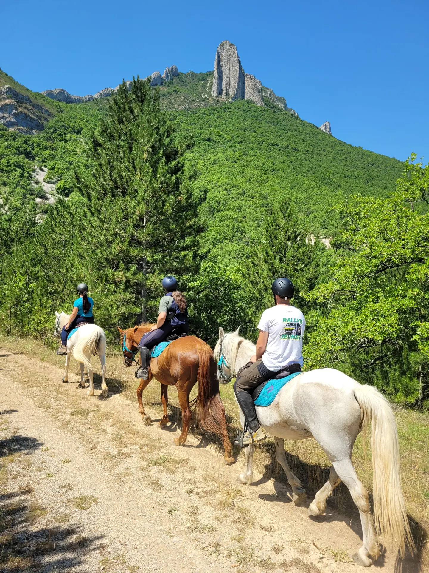 Vous découvrirez le matin la forêt communale de Val-Buëch-Méouge et l'univers pastoral de la Montagne de l'Ubac. Puis le contraste saisissant avec les bords du Buëch et le bonheur de rentrer dans l'eau avec nos chevaux...