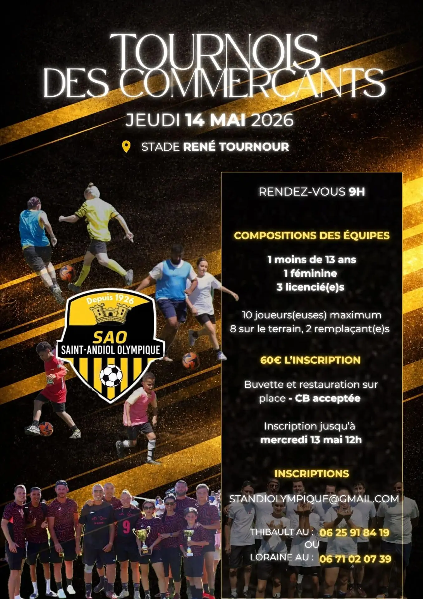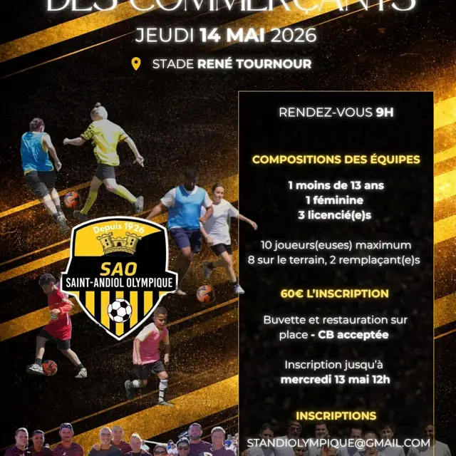 Tournois des commerçants jeudi 14 mai à 9H stade René Tournour.
