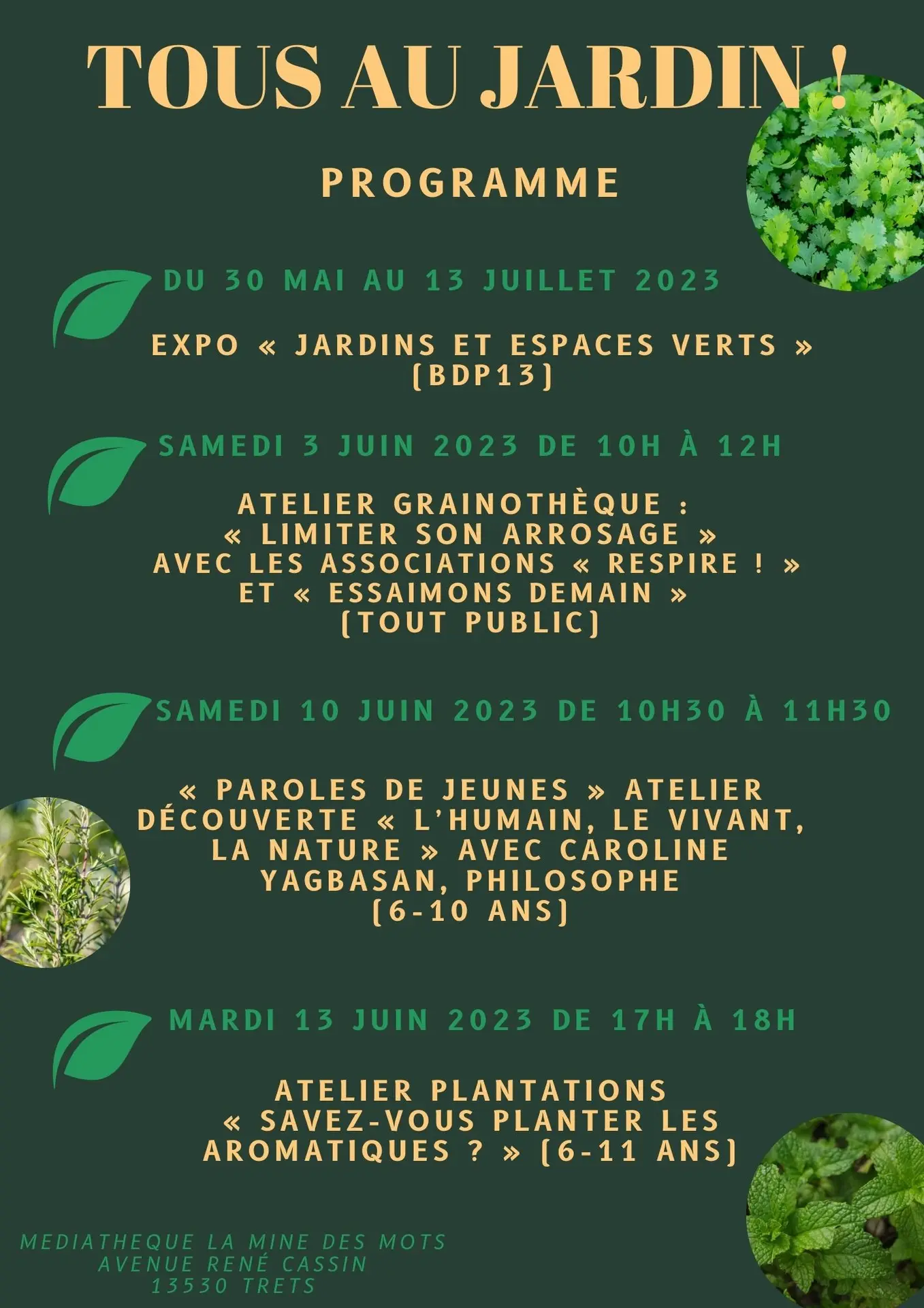 Dans le cadre de la saison printanière et estivale, votre médiathèque vous propose tout un panel d'activités ludiques afin de sensibiliser petits et grands aux différents enjeux relatifs au monde des jardins et du jardinage.
