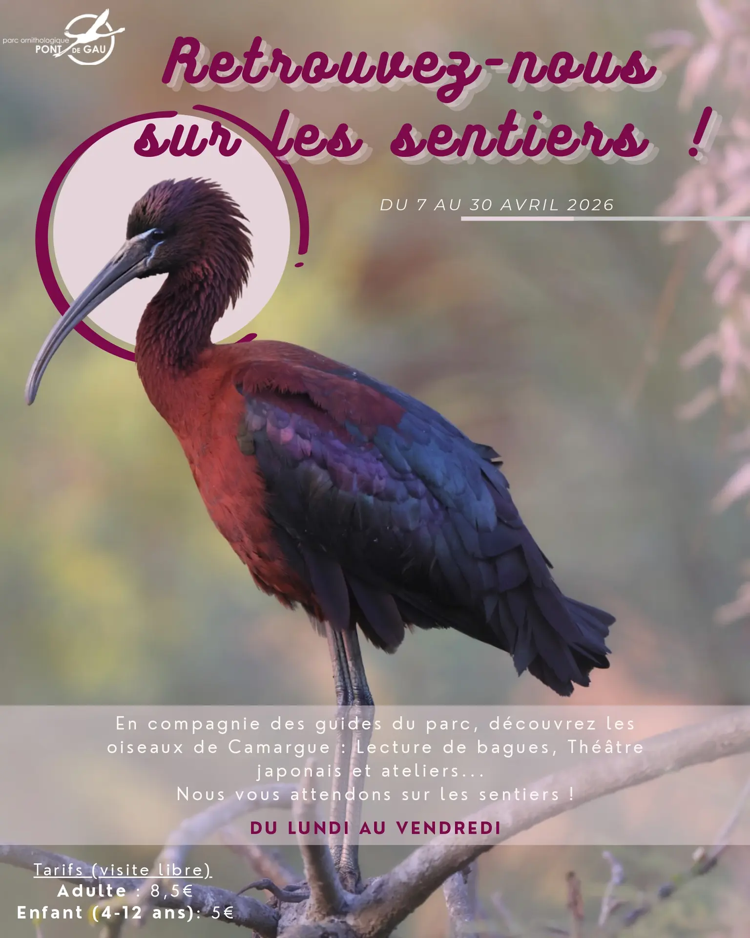 Du lundi au vendredi, en compagnie des guides du parc, découvrez les oiseaux de Camargue : lecture de bagues, ateliers et théâtre japonais....