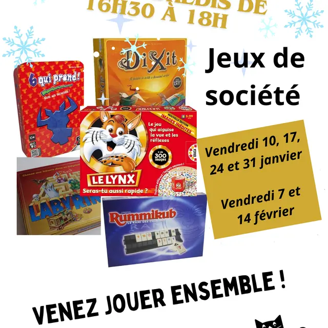 Tous les vendredis de janvier et jusqu'au 14 février, un temps de jeux en famille ou avec les amis. Découverte de jeux de tous types. Tout public.