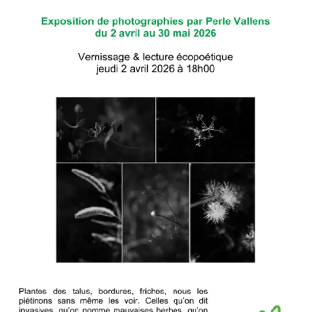 Perle Vallens est photographe et écrivaine (poèmes, nouvelles). Son exposition "Les insignifiantes" s'intéresse aux plantes des talus, bordures, friches, que nous piétinons sans même les voir.