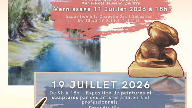 Vernissage de l'exposition à la chapelle des deux artistes : Anne Blanquart, sculptrice et Marie-Noël Bausano, peintre.