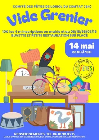 Le Comité des Fêtes de Loriol-du-Comtat organise son Vide Grenier de l'Ascension dans tout le village. Restauration et buvette sur place.