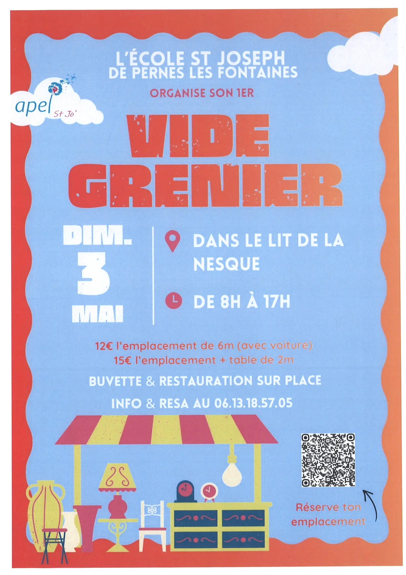L'école St Joseph de Pernes les Fontaines organise son 1er vide grenier. Buvette et restauration sur place.