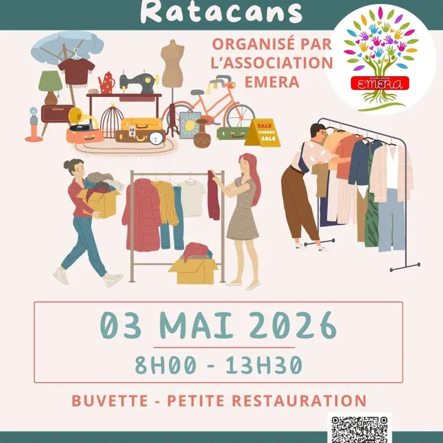 L'Association EMERA organise la 2ème édition de son vide grenier le Dimanche 03 Mai 2026 au cœur de la cour de l'école élémentaire des Ratacans ! Ouverture du portail à 07h00 jusqu'à 7h50 pour les exposants ! Pour le public, venez dénicher les pépites qui vous manquent entre 8h00 et 13h30 !