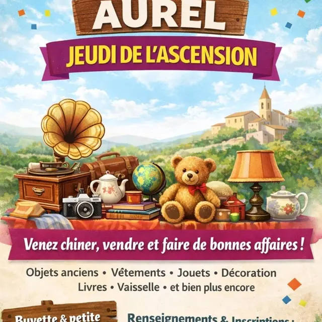 Comme chaque année, le comité des fêtes d'Aurel organise son traditionnel vide-greniers le jeudi de l'Ascension.