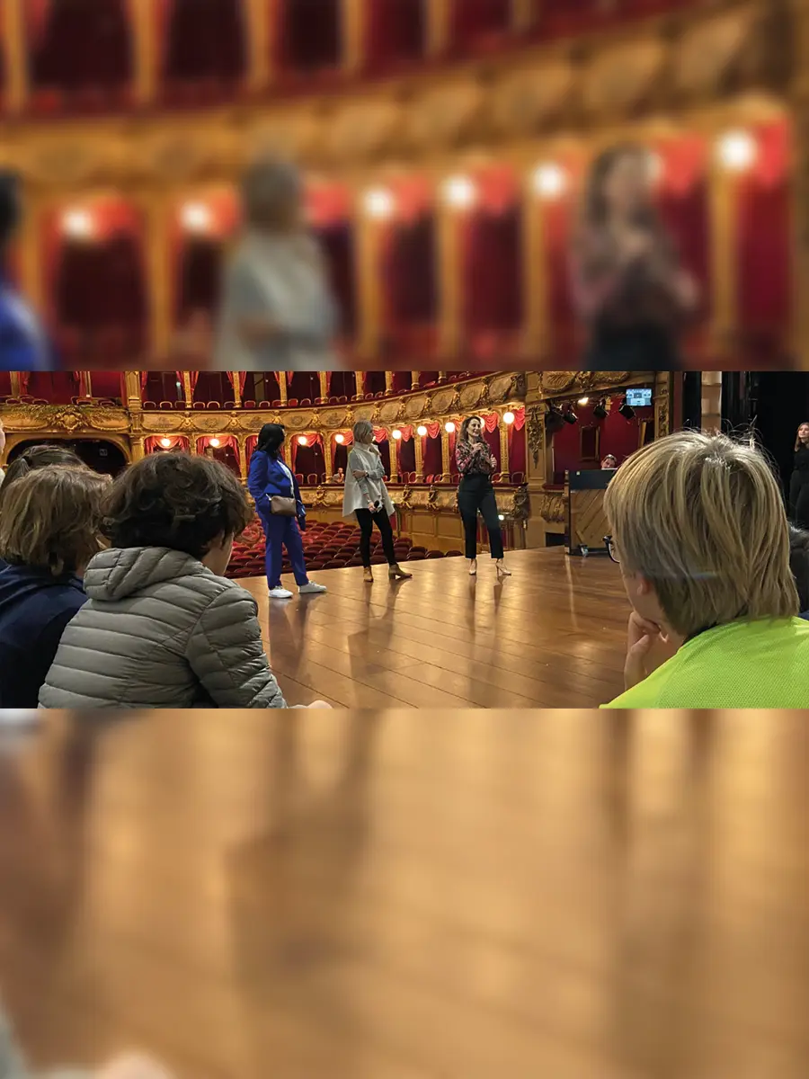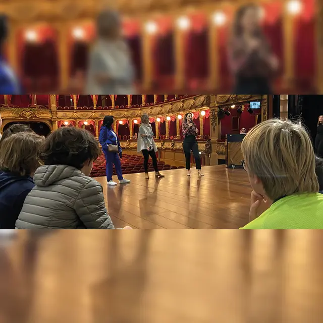 scène, dans les décors d’un ouvrage, à la rencontre des artistes d’une production d’opéra, avant d’assister à la représentation.