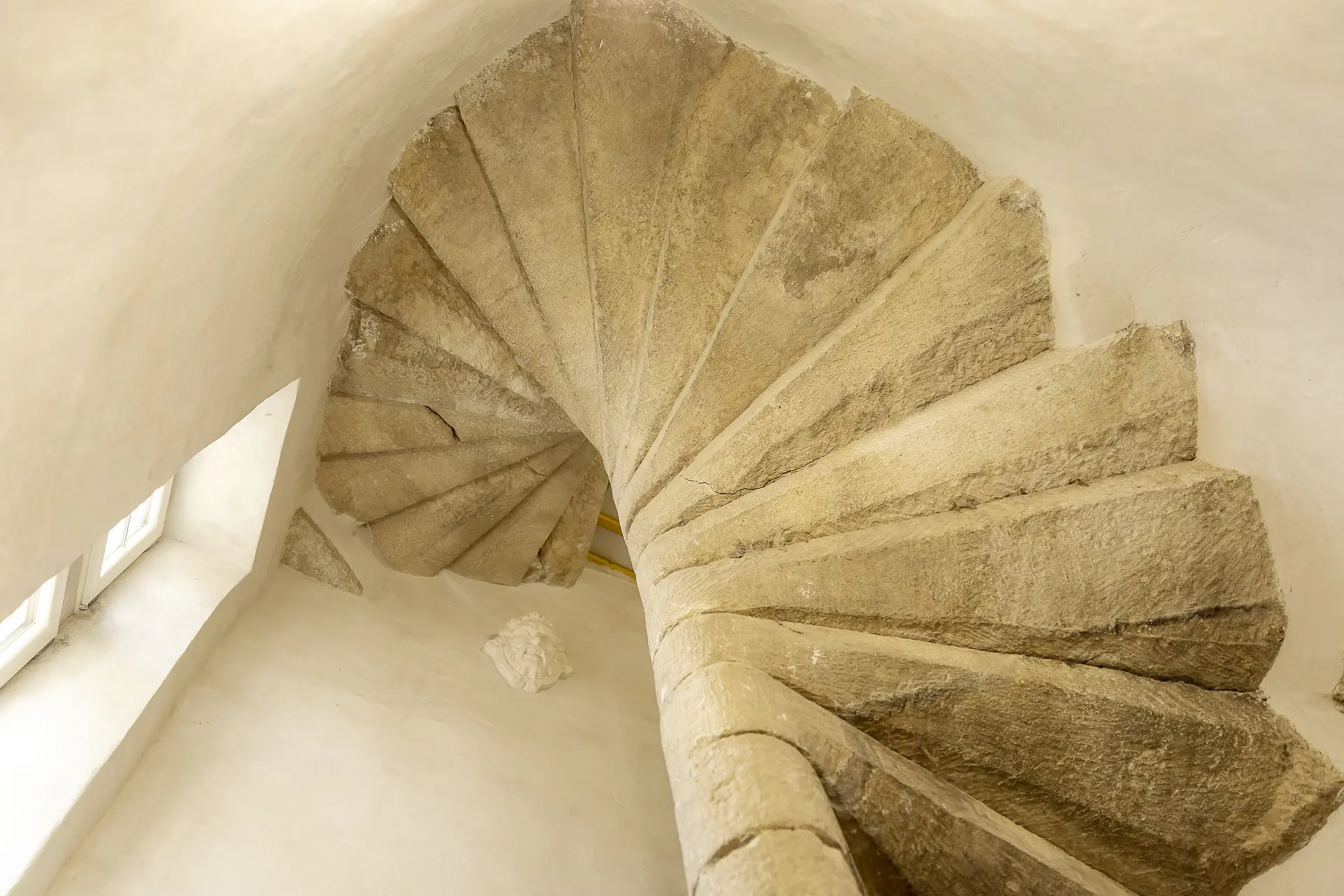 Vous serez directement accueilli dans la tour d'entrée abritant un bel escalier à pas de vis, vous invitant à pénétrer dans un hall décoré d'une collection d'art asiatique.