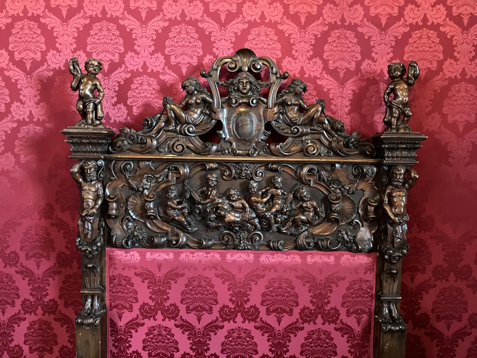 Puis, vous découvrirez le grand salon d'époque régence, une salle à manger haute époque avec un exceptionnel mobilier, une très belle chambre Louis XVI avec ses gravures d'époque. Puis la chambre d'apparat vous éblouira par ses tissus muraux, sa cheminée en pierre et son superbe lit théâtral baroque. Une chapelle ornée de magnifiques statues vous invitera au recueillement. Enfin, un exceptionnel cabinet de curiosités enrichi de collections ancestrales vous permettra de découvrir des objets couvrant les périodes allant de la préhistoire à l'antiquité. Une attention particulière sera portée sur un ensemble remarquable d'objets précolombiens, en particulier issus de la civilisation Maya.