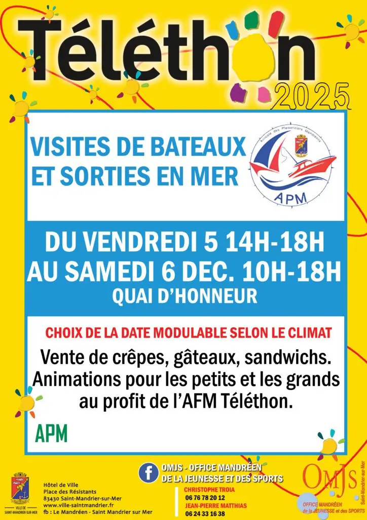 Visites de bateaux et sorties en mer organisées au profit du Téléthon.