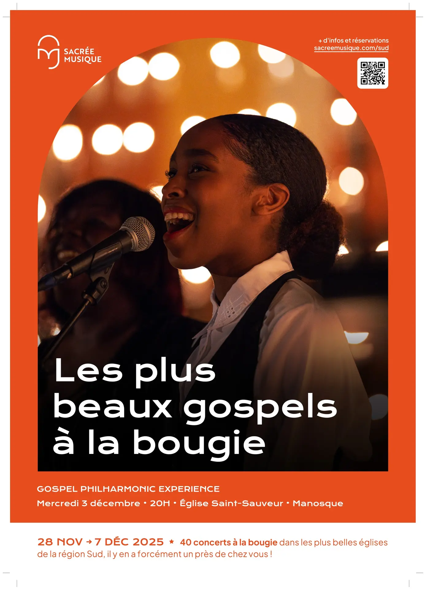 Fut un temps où pour entendre du bon gospel, il fallait traverser l’Atlantique. C’était sans compter sur Pascal Horecka, chef de chœur imprégné de la culture américaine et amoureux du gospel, qui a réuni les meilleurs chanteurs gospel d’Europe pour former le Gospel Philharmonic Experience. Les anciens negro-spirituals nous transmettent la foi et l’espérance des esclaves dans les champs de coton, les nouveaux gospel nous transportent dans la joie intense de la liberté retrouvée. Une expérience saisissante illuminée à la bougie.