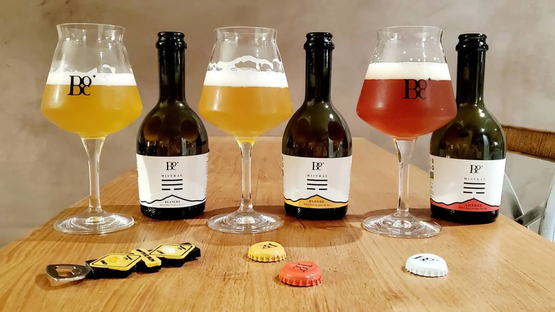 Et c'est pari réussi avec une gamme fine et délicate, comprenant des bières blanches, blondes, ambrées, houblonnées complétées de bières co-fermentées avec des moûts de raisins locaux (Rolle et Muscat Petit Grain).