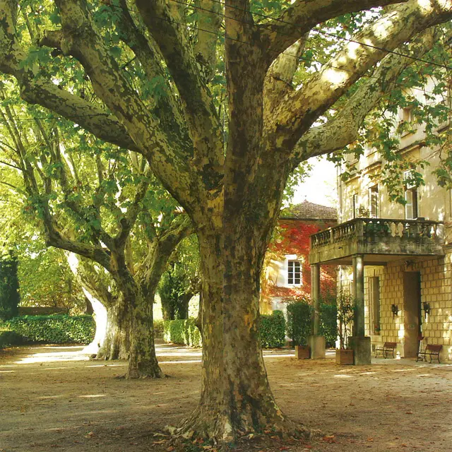 La cave et le caveau de dégustation se situent dans un cadre exceptionnel : sous les platanes plusieurs fois centenaires, une bâtisse du XIXe, une chapelle du XVIIe. Le vignoble s’étend sur les appellations Côtes du Rhône et Grignan- les-Adhémar.