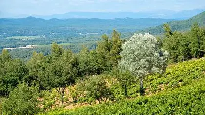 Sur un lieu naturellement propice, 77 parcelles de vignes sont disséminées au sein d’un vaste domaine de 500 hectares à flanc de montagne. Elles forment ici et là de petites terrasses face à la montagne Sainte-Victoire.