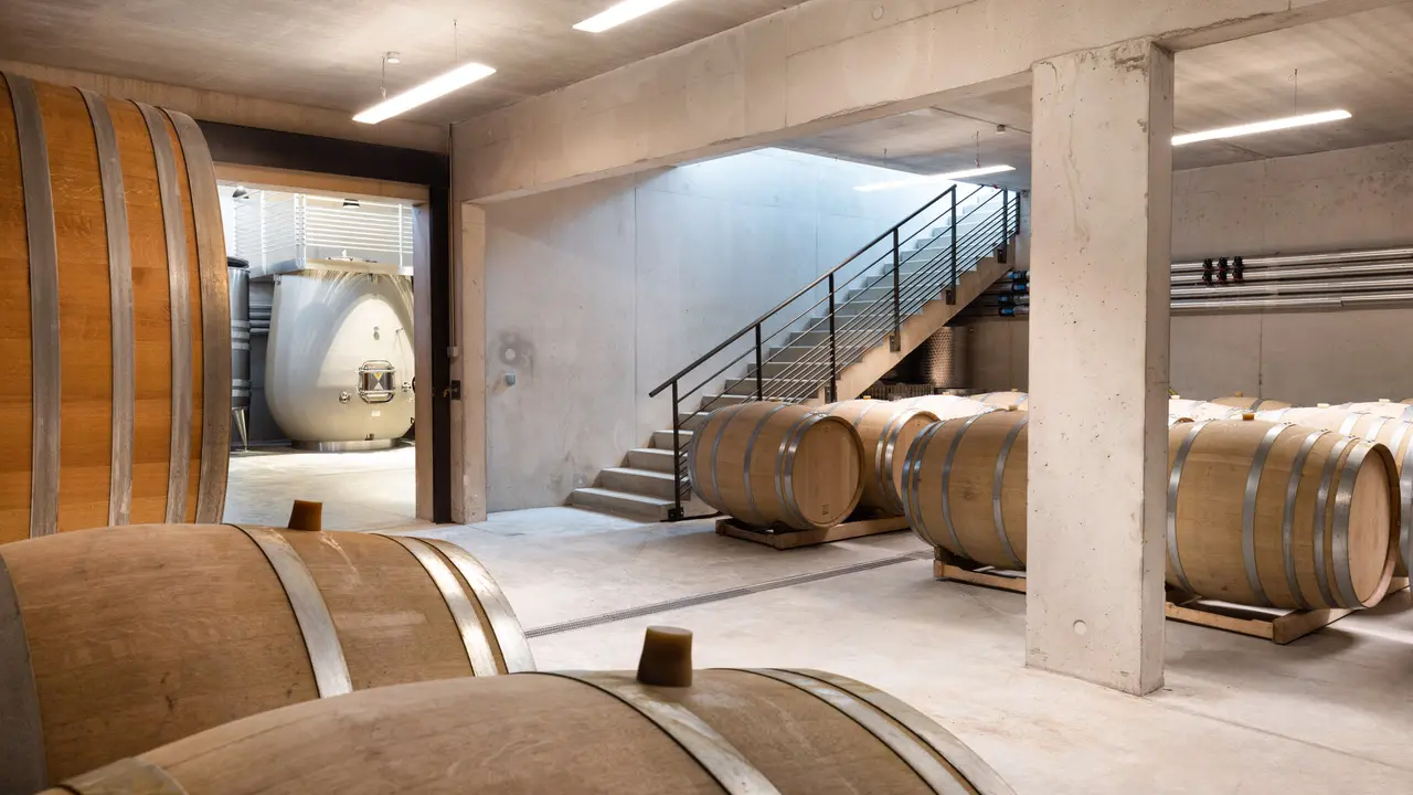 Un étonnant caveau à la fois moderne et chaleureux niché au milieu des vignobles et des forêts de propriété qui garantissent le vrai bio véhémentement défendu.