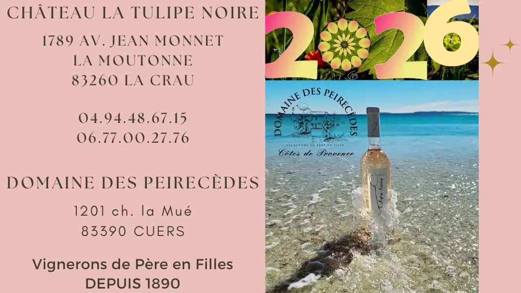 Le château la Tulipe Noire précieusement blotti entre Carqueiranne et la Moutonne où bercés par une brise maritime, le Mourvèdre, le Cinsault, le Grenache et le Tibouren se dorent la pellicule sur les coteaux argilo-calcaires.