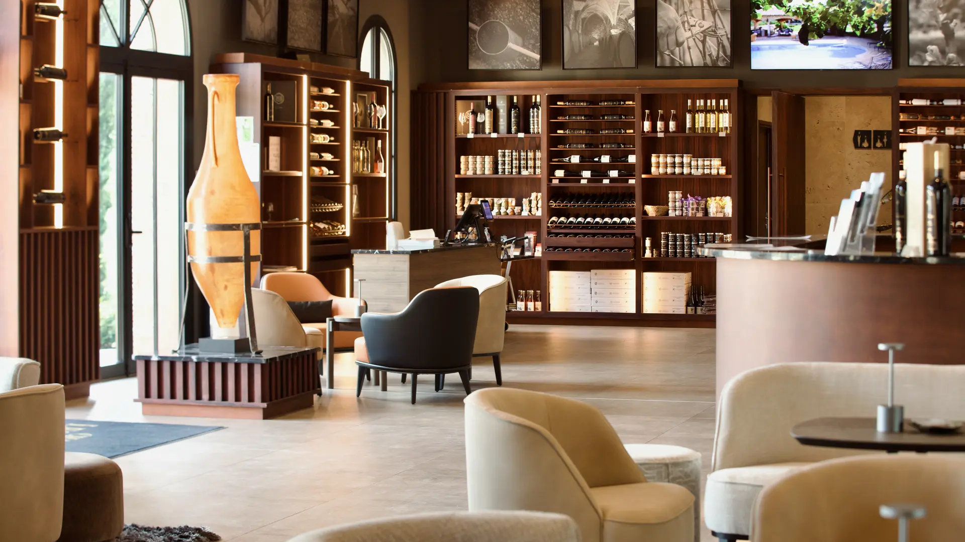 Le Château Les Preyres a le plaisir de vous accueillir dans son caveau de vente et dans son restaurant La Table du Château dans un cadre exceptionnel. Profitez d'une vue plongeante sur la salle d'élevage composée d'amphore qui saura vous surprendre.