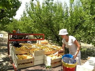 Productions de la ferme : Cerises, abricots, pêches et nectarines, pommes, raisins de table et poires.