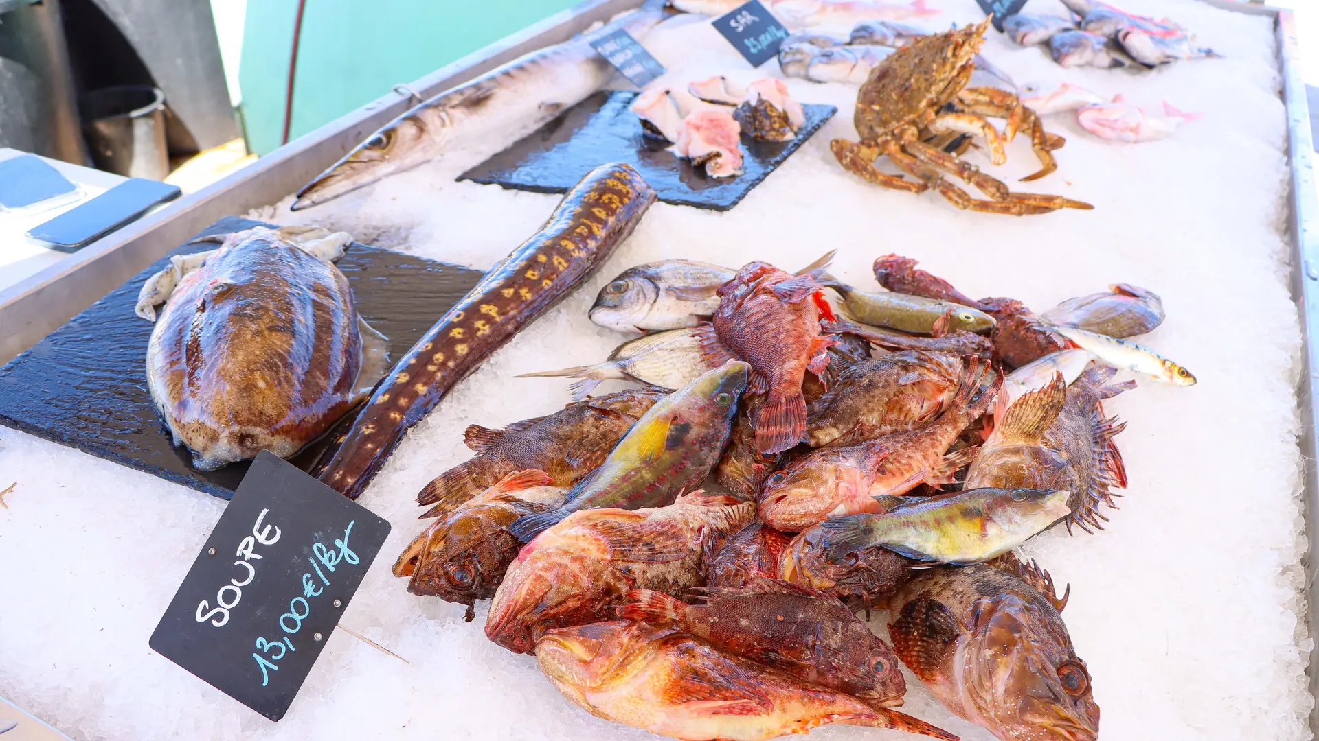 Chaque matin, sur le quai Charles de Gaulle, quelques pêcheurs actifs, accompagnés d'anciens professionnels retraités, proposent une variété de poissons frais tels que daurades, dentis, merlans, thons et espadons, ainsi que des fruits de mer, tous pêchés dans les eaux locales. Ces étals, installés en fonction des conditions météorologiques et des prises du jour, reflètent l'authenticité et le dynamisme de la communauté maritime sanaryenne. Les prud’hommes élus, sous la direction des affaires maritimes, régulent les conflits et gèrent les territoires et les ressources, assurant ainsi une gestion durable de la pêche. Cette vente directe du pêcheur au consommateur garantit des produits d'une fraîcheur inégalée et soutient l'économie locale, offrant aux habitants et visiteurs une expérience culinaire typiquement provençale.