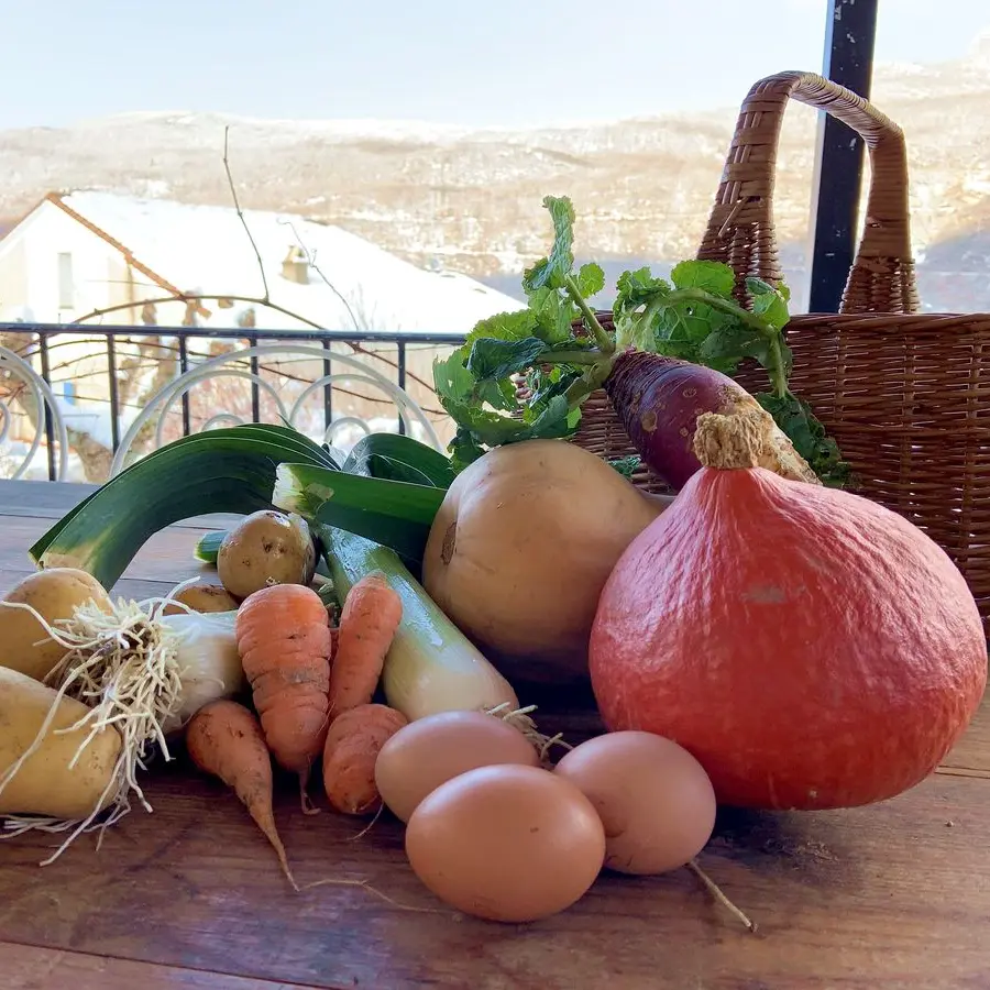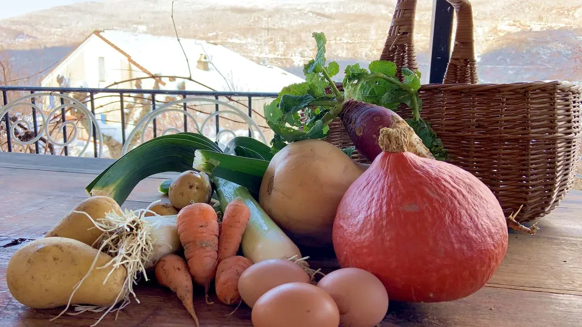Côté jardin : nous proposons des fruits et légumes variés cultivés en agriculture biologique.