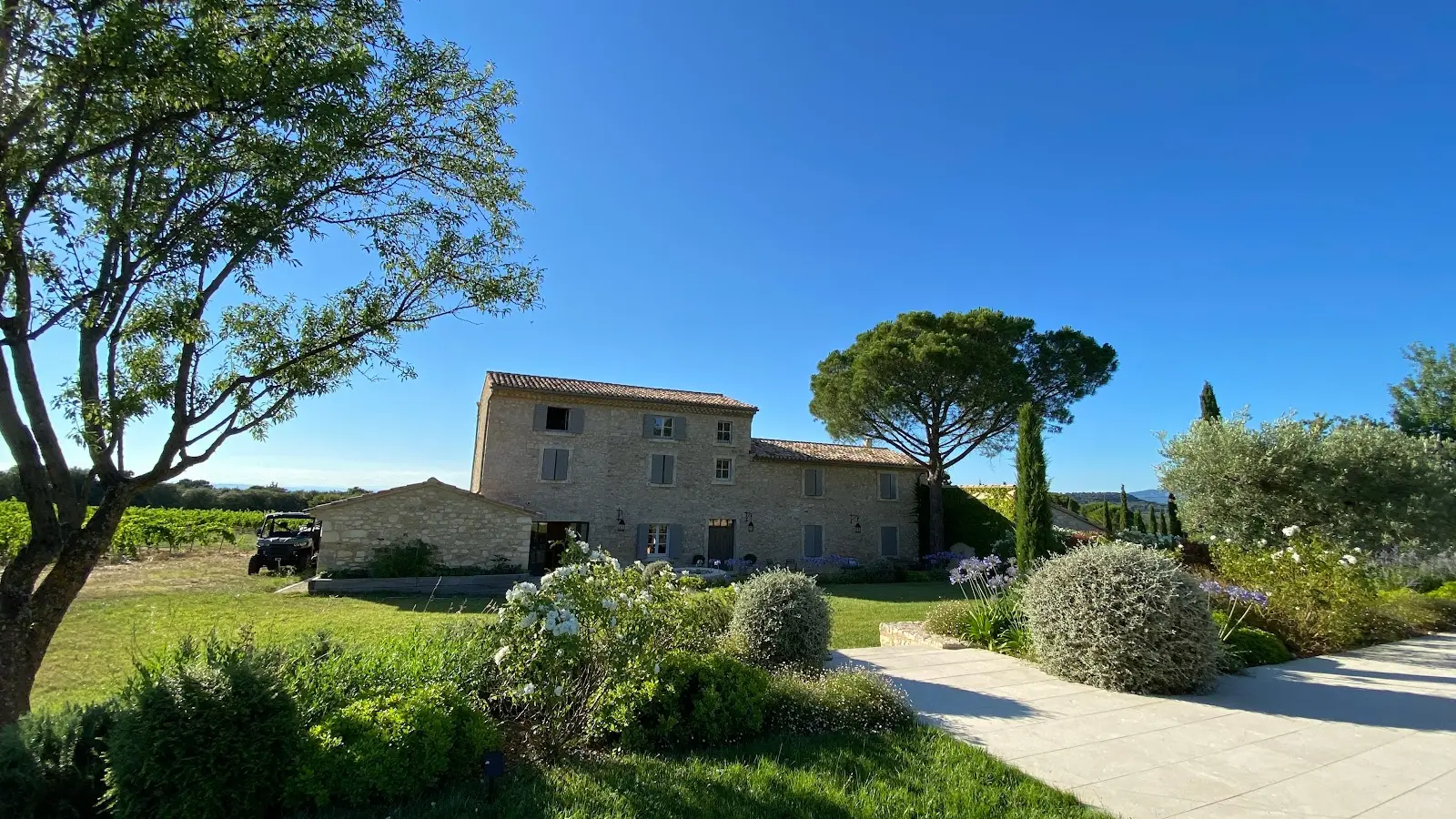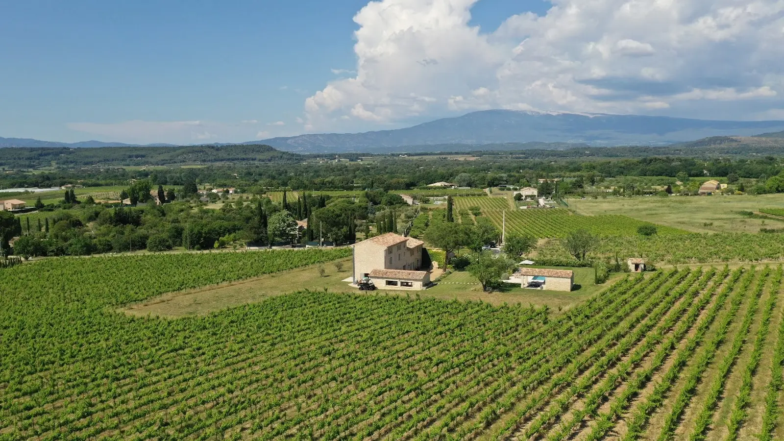 Ce rêve est devenu une réalité il y a 5 ans quand nous avons pu acheter un vieux mas datant du 18ème siècle entouré d’un vignoble en AOP Ventoux, composé de Grenache et de Syrah d’une surface de 5ha, cultivé biologiquement depuis 30 ans. Ce vignoble alors exploité via la cave coopérative se situe à Saint-Didier au coeur du Comtat Venaissin, au pied du mythique Mont Ventoux. Il bénéficie d’un microclimat exceptionnel : du soleil, un climat sec avec le souffle du Mistral favorable à la protection naturelle de la vigne.
