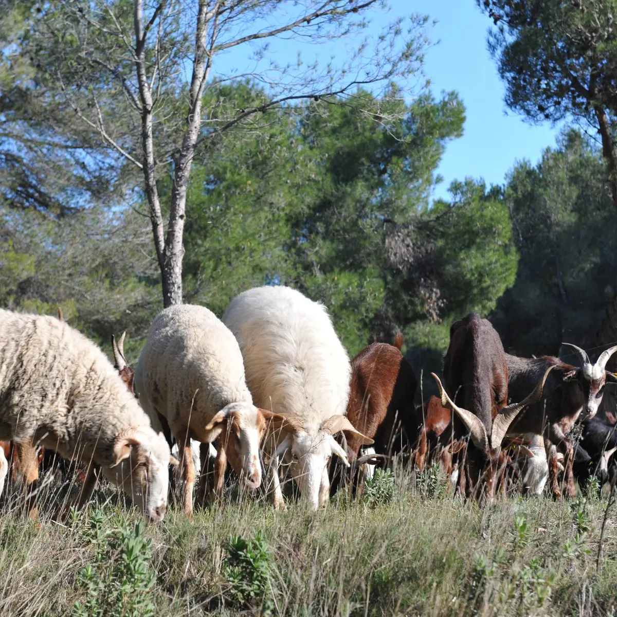 Nous élevons nos brebis et nos chèvres du Rove ainsi que nos vaches et volailles. Tout ce beau monde à quatre pattes pâture dans nos prés et jusque dans nos collines des Alpilles.