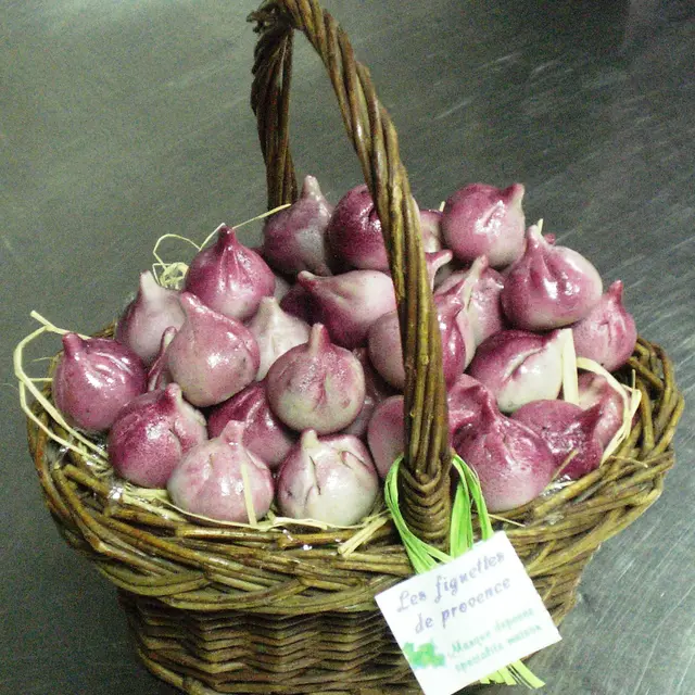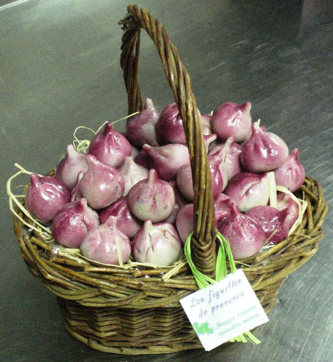 Les figuettes de Provence, marque déposée, sont élaborées à partir de figues accompagnées d'une note de miel et de noix, très finement enrobées de pâte d'amandes "faite maison" et confectionnées entièrement à la main, jusqu'à leur donner une belle apparence de figue... moelleuse à souhait.