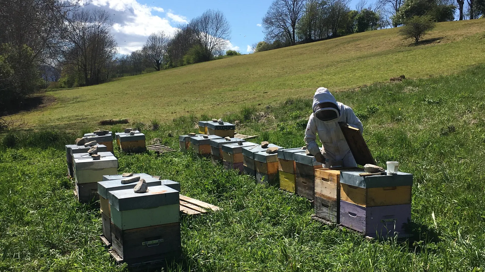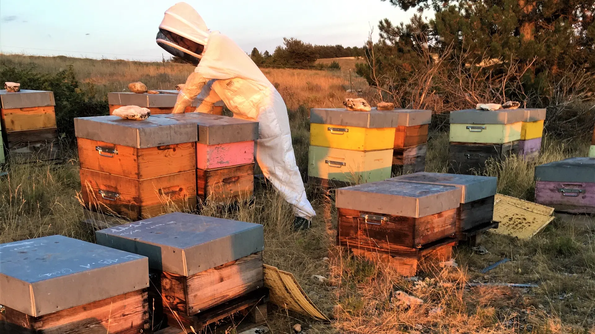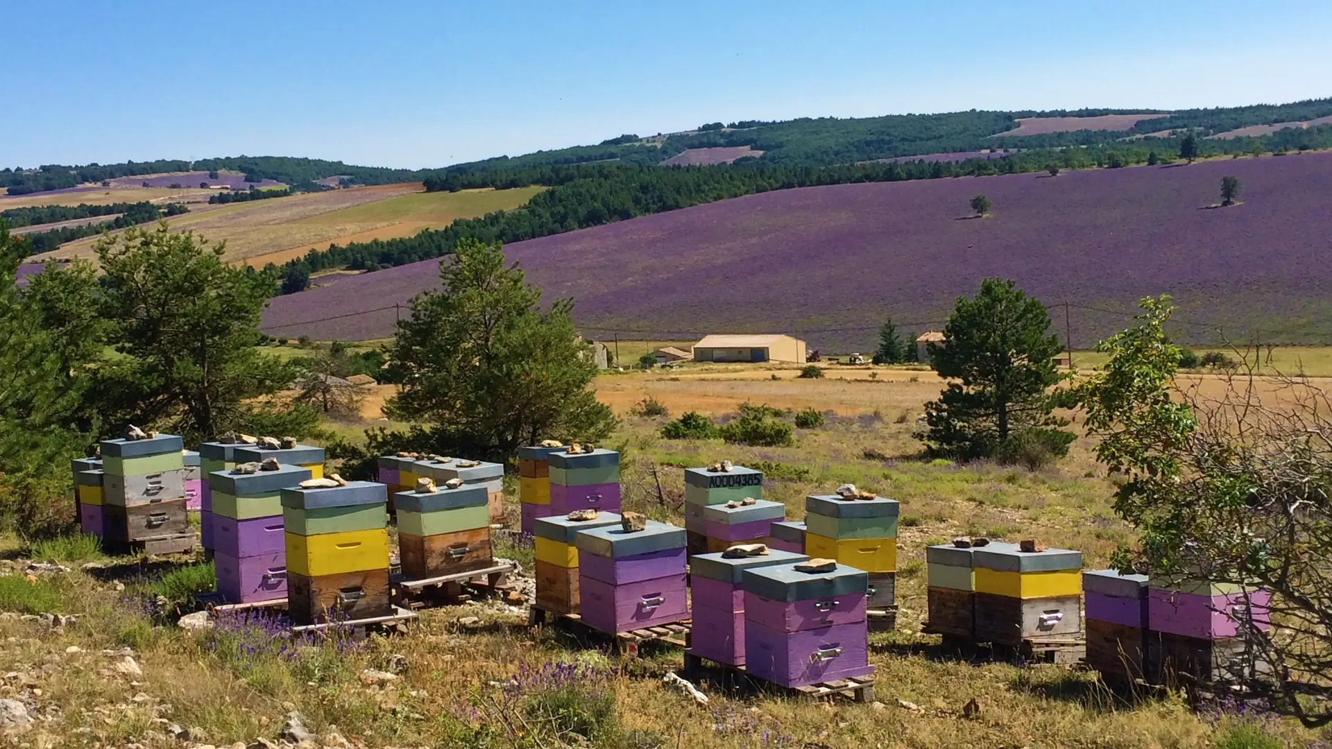 Je privilégie des petits ruchers situés dans les massifs varois et transhume l’été dans les Alpes, la Drôme provençale, les monts de Haute Ardèche et aussi dans le pays du Ventoux, à la recherche de nouvelles floraisons. Je ne collabore qu'avec des lavandiculteurs certifiés en BIO et BIODYNAMIE pour ma production de miels de lavande et de lavande fine.