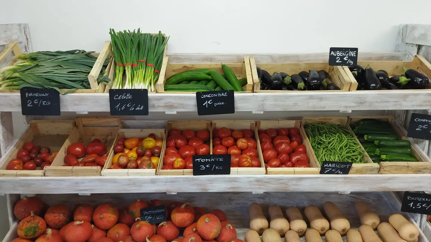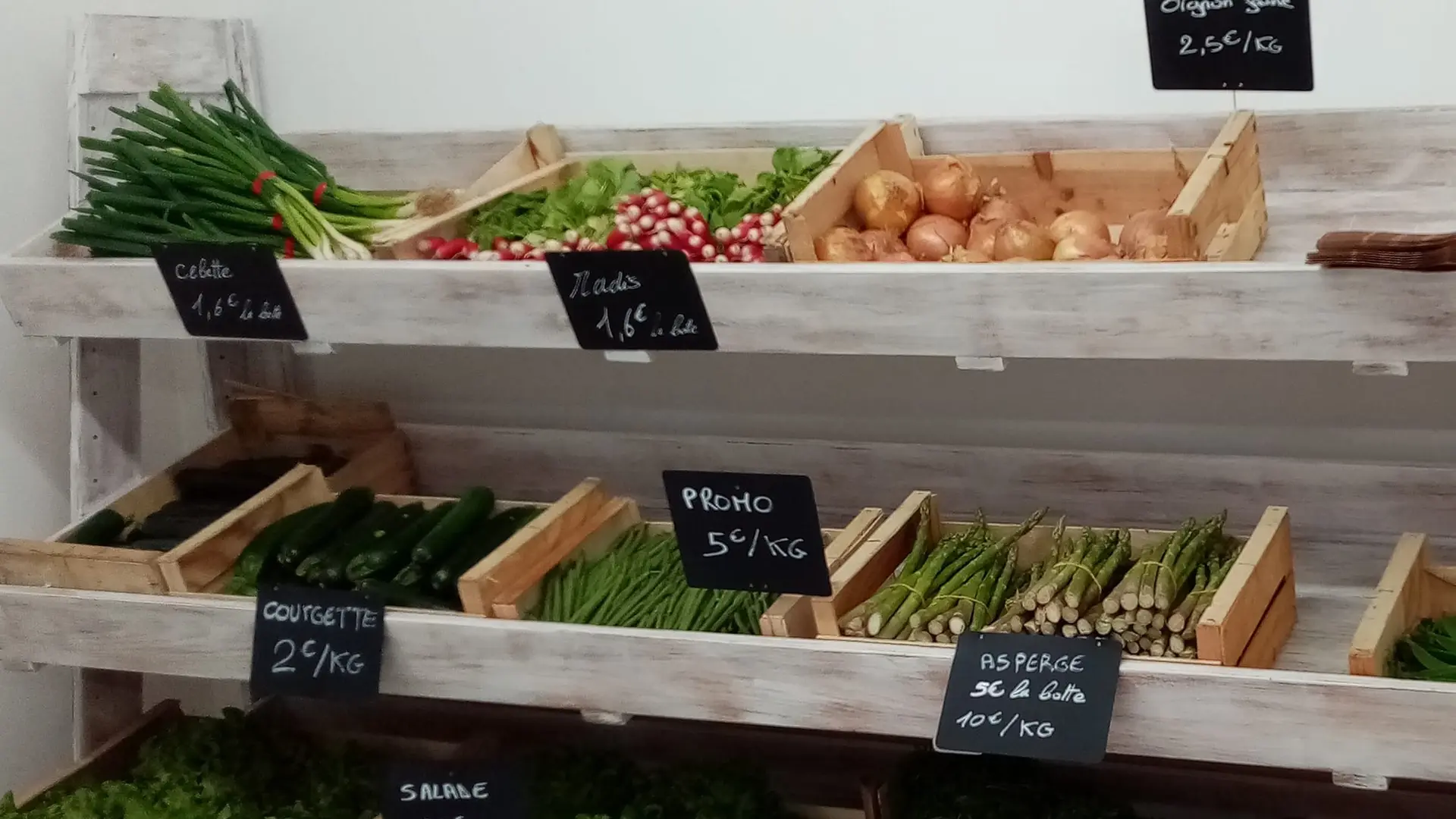Vente directe de fruits et légumes de saison à la ferme et sur le marché de Noyers sur Jabron d'avril à octobre.